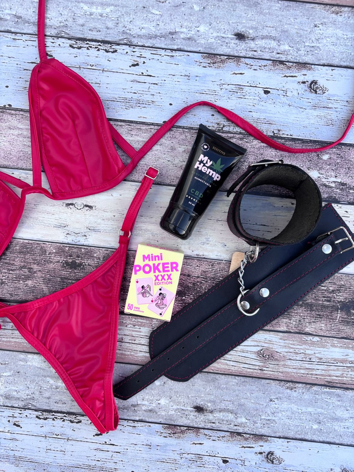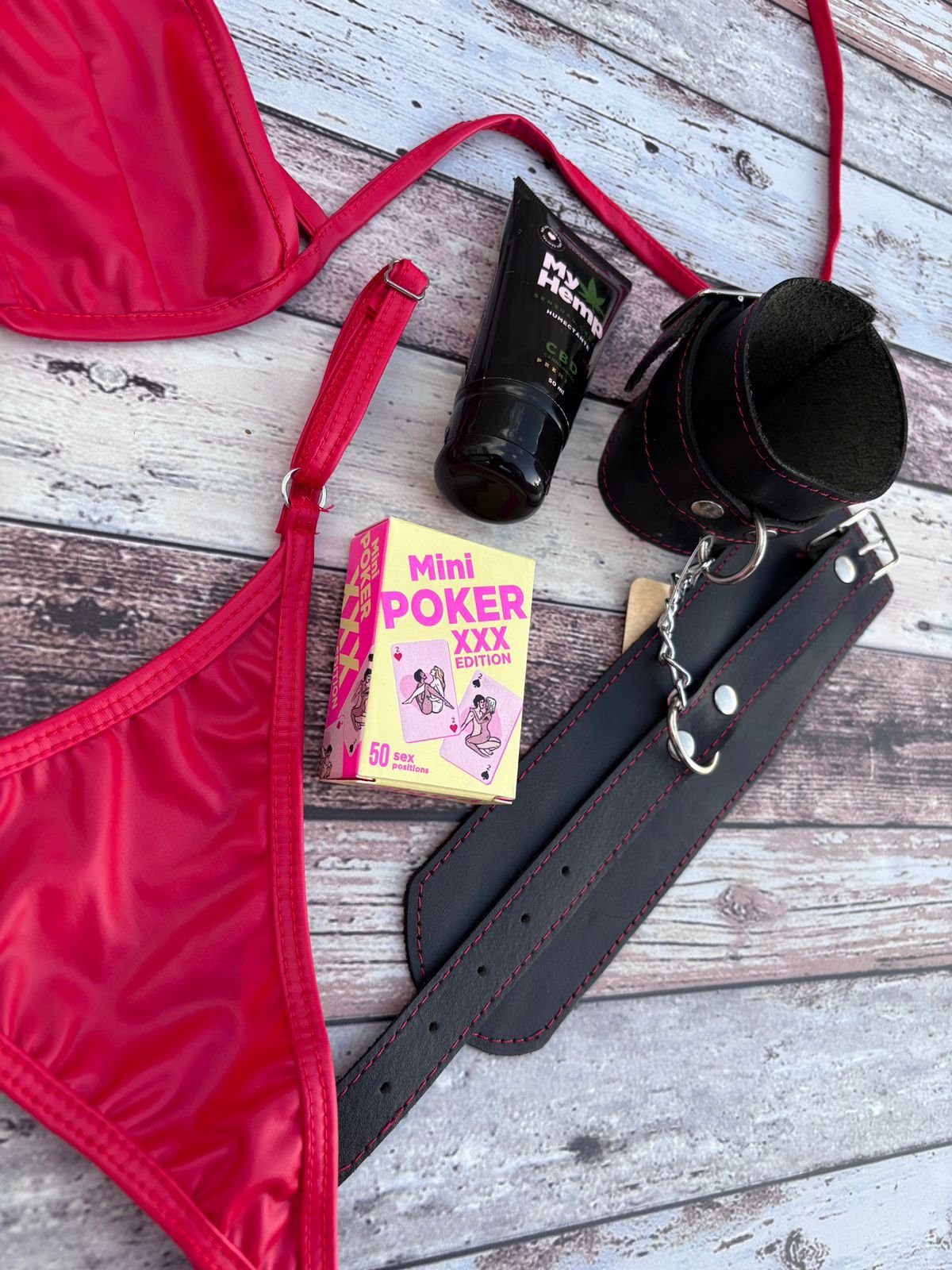 Explora el placer sin limites con este Conjunto vinilo rojo